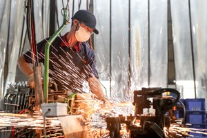 2023年7月25日,四川省廣安華鎣山經(jīng)開(kāi)區(qū)正梁機(jī)械加工廠的工人, 在焊花飛濺的高溫中加緊趕制與重慶、成都等地企業(yè)配套的機(jī)械產(chǎn)品,保障 “訂單”需求。