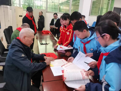 活動伊始,“坐姿端正、文明有禮、認(rèn)真傾聽”——隨著主持老師富有小學(xué)特色的指揮語落地,階梯教室里100余名同學(xué)們迅速抬頭挺胸,目視前方,坐姿筆直。“少先隊(duì)員出列,為來賓佩戴紅領(lǐng)巾”——少先隊(duì)員們一一為老領(lǐng)導(dǎo)和嘉賓們系上紅領(lǐng)巾并行少先隊(duì)禮。這一開場瞬間將活動儀式感拉滿。