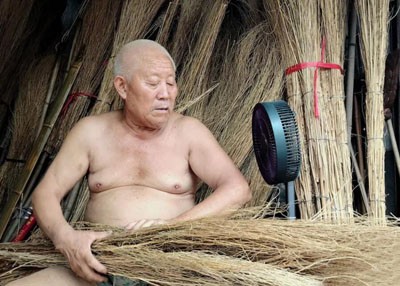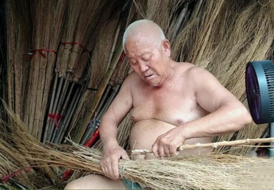 又忙著手里編掃把的活兒