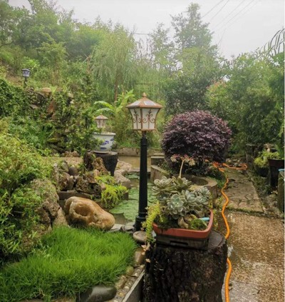 猶如打扮我的姑娘,我打扮著我的花園。幫薔薇、菟絲子爬上花架,幫女貞子、紅葉球修剪“圓夢”,幫滿園的鳥兒、蜻蜓、螢火蟲和蛐蛐營造一個(gè)自由飛翔、放聲歌唱的家園,幫一林子的薔薇花、玫瑰花、紫薇花、欖檻花、桃花、李花、梨花和燈籠花,讓這些嬌子們在曲徑通幽的路徑、豐茂翠綠的竹林和綠肥紅瘦的春意間探出頭來,猶如雪地里點(diǎn)燃一堆堆篝火,銀河里點(diǎn)綴滿視野的星辰,在一年四季里點(diǎn)燃一院子的溫暖、詩意和鄉(xiāng)愁!