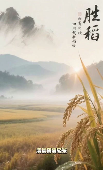 清晨,薄霧如輕紗般悄然鋪展,溫柔地掀開(kāi)四川武勝農(nóng)門(mén)那靜謐的面紗。稻田在熹微的晨光中低垂著穗頭,一串串金黃的稻谷仿佛在竊竊私語(yǔ),訴說(shuō)著大地深處最細(xì)膩、最溫情的秘密。露珠沿著修長(zhǎng)的葉尖緩緩滑落,宛如一句尚未落筆的詩(shī)行,晶瑩剔透,含蓄婉約,帶著幾分少女般的羞怯與詩(shī)意。這一刻,秋天并非以喧囂的姿態(tài)降臨,而是將陽(yáng)光細(xì)細(xì)捻成柔光的絲線,一針一線,悄然織進(jìn)軍綠色田埂的褶皺里,也織進(jìn)了女人心底那份對(duì)故土綿長(zhǎng)而深沉的眷戀。