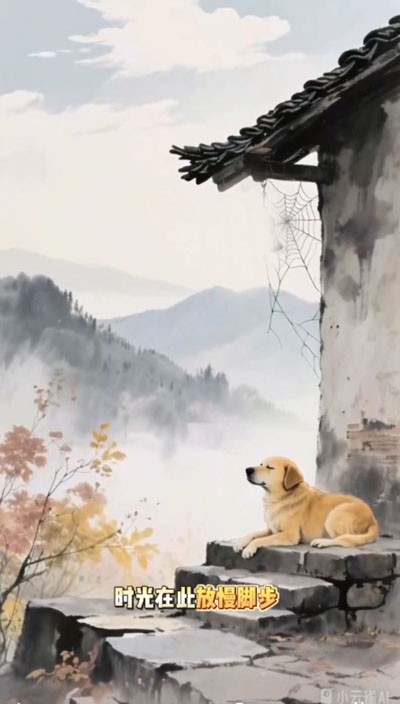 老屋檐下,風(fēng)鈴靜默,蛛網(wǎng)在微光中輕輕顫動(dòng),仿佛連時(shí)間也放慢了腳步,不忍驚擾這份寧?kù)o。一只黃狗懶洋洋地臥在青石階上,瞇著眼,數(shù)著天上緩緩游走的云片——那云,潔白松軟,像極了兒時(shí)母親晾在竹竿上的棉布,干凈、溫暖,帶著陽(yáng)光曬透的清香。而當(dāng)一縷炊煙裊裊升起,秋便有了最柔軟的筆觸。它不聲不響,在青瓦之上輕輕寫(xiě)下暖意,像極了母親在廚房忙碌的背影,無(wú)聲無(wú)息,卻讓人心底生出無(wú)限安穩(wěn)與依戀。