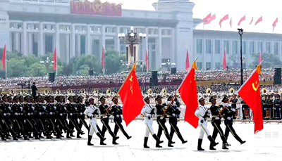 護旗飛過閱兵場,鮮紅黨旗領航向,