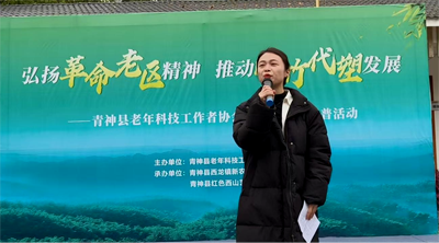 青神縣老促會副會長蔣海清,代表青神縣革命老區(qū)建設(shè)促進會,對老科協(xié)成功舉辦“弘揚革命老區(qū)精神,推動以竹代塑發(fā)展”是科普活動,表示祝賀。他說:“以竹代塑”是縣委、縣政府實施的重要工程。希望“以竹代塑”理念深入人心,成為助力鄉(xiāng)村振興的一個重要支撐。