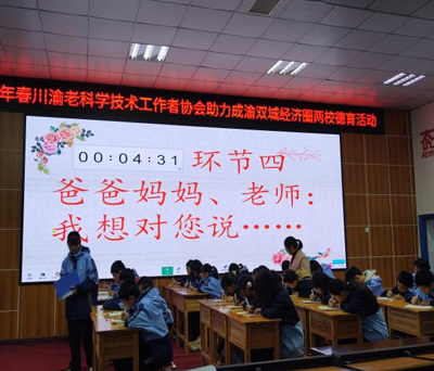 隨后召開座談會(huì)。座談會(huì)上,瀘縣毗盧鎮(zhèn)學(xué)校校長廖遠(yuǎn)兵匯報(bào)了學(xué)校發(fā)展概況及德育工作;瀘縣榮昌區(qū)清升鎮(zhèn)初級中學(xué)校長朱莉,對毗盧鎮(zhèn)學(xué)校德育觀摩活動(dòng),公開課展示獨(dú)特的教學(xué)設(shè)計(jì)和新穎的教學(xué)方法,給予充分肯定;瀘縣毗盧鎮(zhèn)黨委委員毛啟金同志,就毗盧鎮(zhèn)的發(fā)展和黨委政府對教育工作的重視進(jìn)行了匯報(bào);瀘縣老科協(xié)副會(huì)長、文教專委會(huì)理事長張?zhí)旎⒕蜑o縣老科協(xié)助力學(xué)校德育教育所做工作作了交流發(fā)言。與會(huì)的川渝兩地老科協(xié)專家們,對兩所結(jié)對學(xué)校聚焦學(xué)校立德樹人工作,推進(jìn)鄉(xiāng)村教育高質(zhì)量發(fā)展,開展合作研討的做法給予了高度贊揚(yáng);期望兩所結(jié)對學(xué)校繼續(xù)聚焦相關(guān)教育主題,主動(dòng)深入開展研討,爭取創(chuàng)出特色品牌,建成成渝老科協(xié)助力鄉(xiāng)村教育的典型樣本。兩個(gè)區(qū)縣的老科協(xié)也將繼續(xù)發(fā)揮“銀發(fā)智慧”作用,在專業(yè)助力、經(jīng)費(fèi)助力、資源助力、激勵(lì)助力等方面給予結(jié)對學(xué)校力所能及的扶持,共同推進(jìn)毗鄰兩地鄉(xiāng)村學(xué)校的優(yōu)質(zhì)特色發(fā)展。