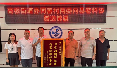 2025年8月10日,老科協(xié)聯(lián)系村——高板同善村黨總支書記楊永貴帶領(lǐng)村“兩委”成員專程到縣老科協(xié),贈(zèng)送了“旱災(zāi)時(shí)刻伸援手 搶裝提灌保豐收”的錦旗。村總支書記楊永貴贈(zèng)送錦旗后,握著縣老科協(xié)會(huì)長(zhǎng)陳光華的手,感慨地說(shuō):“這次我們村遭受特大干旱,是你們老科協(xié)伸出援助之手,在關(guān)鍵時(shí)刻解決了我們的問(wèn)題,我代表“村兩委”感謝你們,代表全村老百姓感謝你們!”