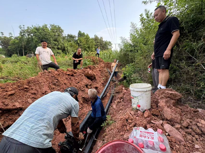 8月6日,炎炎烈日下,金堂縣老科協(xié)秘書長(zhǎng)彭世選組織帶領(lǐng)專業(yè)技術(shù)施工人員爭(zhēng)分奪秒地為高板同善村搶裝電力提灌站。當(dāng)日凌晨7點(diǎn),天剛破曉,金堂縣老科協(xié)的同志和施工人員已從40公里外的縣城驅(qū)車抵達(dá)了高板同善村11組提灌站工地。旱情如火,容不得絲毫耽擱,施工人員迅速投入到緊張的提灌站管道安裝工作中。八月的金堂酷熱難耐,太陽(yáng)高懸,炙烤著大地,施工人員和縣老科協(xié)會(huì)員的衣服很快就被汗水濕透,緊緊貼在身上,但他們沒(méi)有絲毫懈怠和怨言。