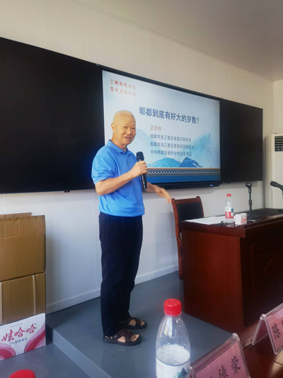 郫都區(qū)老科協(xié)黨總支書記衛(wèi)志中以“了解郫都?xì)v史,堅定文化自信”為主題,從歷代關(guān)于“古蜀都城”的典籍記載談起,到如數(shù)家珍地展示郫都區(qū)的文物出土,以文物考古成果為依據(jù),同時采用歲月加減的算數(shù)方式,實證了《郫都到底有好大的歲數(shù)?》這個困惑了四川史學(xué)界了多少年的課題。