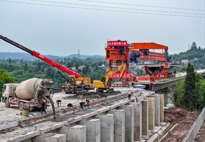 6月5日,由中鐵十局承建的西渝高鐵康渝段站前十一標(biāo)四川省華鎣市明月鎮(zhèn)何家灣特大橋第25孔箱梁成功架設(shè),標(biāo)志著該標(biāo)段首座橋梁成功鋪架完成,為后續(xù)架梁施工、鋪軌作業(yè)和全線貫通奠定了堅(jiān)實(shí)基礎(chǔ)。