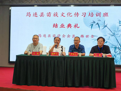 2025年8月22—24日,以非物質文化遺產保護與傳承為核心內容,旨在進一步增強文化認同,鑄牢中華民族共同體意識的筠連縣2025年民族文化傳習培訓班,在筠連縣城蜀亨酒店7樓會議室舉行,該班由中共筠連縣委統(tǒng)戰(zhàn)部、縣民族宗教事務局(民宗局)、縣文化廣播電視和旅游局(文廣旅游局)主辦、筠連縣苗學會、筠連縣文化館承辦,縣級非物質文化遺產(“非遺”)傳承人、部分大學生、中學生、小學畢業(yè)生共計74人參加。原縣委統(tǒng)戰(zhàn)部副部長、縣民宗局原局長、縣苗學會副會長韓亮擔任班主任,縣苗學會會長、原縣政協(xié)副主席韓世全,縣苗學會副會長、秘書長艾勇等擔任培訓主持。筠連縣民族宗教事務局副局長毛俊、縣文化廣播電視和旅游局副局長羅安世參加了開班儀式和結業(yè)典禮,對傳習培訓提出了要求。
