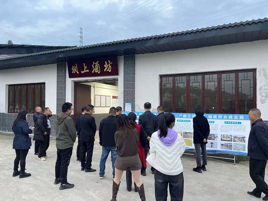 調(diào)研溪口鎮(zhèn)袁家壩村“壩上酒坊”酒業(yè)、魚塘,分析其“黨支部+合作社+農(nóng)戶”運(yùn)營模式,學(xué)習(xí)黨建引領(lǐng)產(chǎn)業(yè)發(fā)展的經(jīng)驗(yàn)。走訪村民,宣傳農(nóng)村產(chǎn)權(quán)交易政策,收集對(duì)魚塘、酒坊、道路修繕、垃圾處理等基礎(chǔ)設(shè)施的需求,形成問題清單。