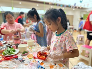 活動(dòng)開(kāi)始,假期學(xué)校的志愿者老師們首先讓孩子們自由組合小組,確立小組長(zhǎng)。接著小組長(zhǎng)給組員們分工。緊接著志愿者老師指導(dǎo)孩子們?cè)?/span>樣洗菜,手把手地教孩子們切菜。一切準(zhǔn)備工作就緒。老師就指導(dǎo)孩子們炒菜和煮面。整個(gè)體驗(yàn)過(guò)程井然有序地進(jìn)行。一份份親手做出的菜肴擺上桌。孩子們吃著自己親手做的有鹽無(wú)味的炒菜總覺(jué)得比任何美食還好吃,因為它是自的勞動(dòng)成果。這時(shí)小朋友心中只有滿滿的成就感。最后每個(gè)一小組一起收拾打掃衛(wèi)生,洗餐具、掃地、收拾桌面,大家分工進(jìn)行。最后決出本次廚趣體驗(yàn)活動(dòng)小組排名。
