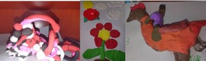 在春艷姐姐、小朱哥哥、李霞姐姐他們的帶領(lǐng)下,一個(gè)上午53個(gè)孩子的小手里便長(zhǎng)出了鮮花、祥瑞和甜甜圈,羞羞的夢(mèng)蓮?fù)瑢W(xué)也在大地上植出了參天大樹(shù)。