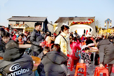 “中國掛面村”的精彩不只在夜晚,隨著一個個嶄新的鋪面開門迎客,商品豐富的“掛面村”成為中江文旅一塊新的“金字招牌”,而這塊“金字招牌”在活動第一天,便通過呈現(xiàn)獨特的非遺魅力和田園風光,融入水上咖啡、田園小火車、精品民宿、美食集市等。春節(jié)長假,每天都有2萬多人前來“中國掛面村”游玩打卡。車水馬龍,熱鬧非凡。