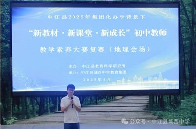 在教育的浩瀚星空中,每一次探索都是對未知的勇敢奔赴,每一場賽事都是教師成長的璀璨舞臺。為進(jìn)一步全方位提升我縣初中教師的教學(xué)綜合素養(yǎng),促進(jìn)初中教師在教學(xué)水平與教學(xué)實踐能力上不斷突破、持續(xù)精進(jìn),實現(xiàn)“雙減”背景下“提質(zhì)增效”的發(fā)展目標(biāo)。近日,由中江縣教育科學(xué)研究所主辦,城西中學(xué)承辦的英語、政治、美術(shù)、地理四個學(xué)科素養(yǎng)大賽復(fù)賽順利舉行。本次大賽以“新教材?新課堂?新成長”為主題,宛如一場教育智慧的盛宴,匯聚了眾多初中教師的卓越風(fēng)采,為初中教育教學(xué)改革注入了新的活力。