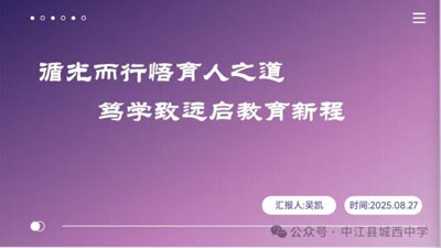 夏日的蟬鳴在城西中學(xué)的校園里交織成一曲悠揚(yáng)的樂(lè)章,陽(yáng)光透過(guò)枝葉的縫隙灑下斑駁光影。2025 年的這個(gè)暑期,一場(chǎng)意義非凡的教師集中培訓(xùn)活動(dòng)在這片充滿希望的校園里悄然拉開(kāi)帷幕, 《厚植師者素養(yǎng),綻放教育活力》如同明亮的燈塔,引領(lǐng)著全體教師踏上探尋教育本真的新征程。