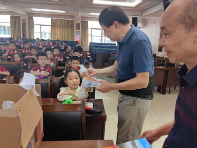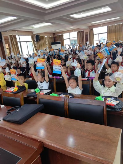 隨后,一場充滿愛意的物資捐贈(zèng)儀式溫暖展開。“五老”符軍文等成員和學(xué)校老師們,帶著滿滿的關(guān)懷與祝福,為留守兒童送上了精心準(zhǔn)備的慰問品。有印著“沿心筑夢 關(guān)工同行”字樣的筆記本,那一個(gè)個(gè)工整的字跡仿佛在訴說著對(duì)孩子們夢想的守護(hù);嶄新的書包,承載著知識(shí)的重量,也寄托著對(duì)孩子們未來的美好期許;實(shí)用的文具,將成為孩子們學(xué)習(xí)道路上的得力伙伴;還有象征著團(tuán)圓與甜蜜的月餅,讓孩子們?cè)诠?jié)日里感受到家的溫暖。小易作為留守兒童代表上臺(tái)發(fā)言,他稚嫩卻堅(jiān)定的聲音,表達(dá)了對(duì)關(guān)工委和學(xué)校老師們的感激之情,也展現(xiàn)了留守兒童積極向上、勇敢面對(duì)生活的精神風(fēng)貌。