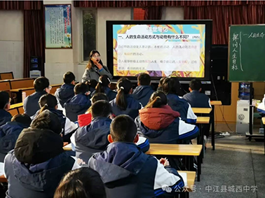 新教師們,是教壇上冉冉升起的新星,帶著對教學(xué)的赤誠與執(zhí)著,在三尺講臺不斷探索。鄧周燕老師走進(jìn)七年級 7 班的課堂,以《探問人生目標(biāo)》為題,用鮮活的案例、熱烈的互動,引導(dǎo)少年們叩問內(nèi)心、樹立理想,讓人生方向在思辨中愈發(fā)清晰。