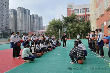 謝守江老師在學(xué)校操場,指導(dǎo)八年級 1 班的學(xué)生進(jìn)行《籃球中考繞桿訓(xùn)練》,標(biāo)準(zhǔn)的示范、細(xì)致的糾錯,助力同學(xué)們攻克中考難點,在奔跑跳躍中錘煉技能;趙小樂老師則帶領(lǐng)七年級 2 班的學(xué)生,練習(xí)《籃球雙手胸前傳球》,耐心講解動作要領(lǐng),讓每一位學(xué)生都能扎實掌握技能,在運動中收獲快樂與成長。