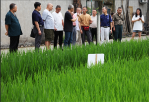 調(diào)研組一行還到位于青城山鎮(zhèn)官田社區(qū)的水稻試驗(yàn)田進(jìn)行了察看。