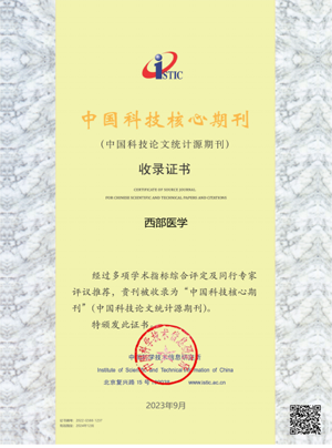9月20日,中國科學技術(shù)信息研究所在北京召開了2023年中國科技論文統(tǒng)計結(jié)果發(fā)布會,會上發(fā)布了《2023年版中國科技期刊引證報告(核心版)自然科學卷》,由北京安貞醫(yī)院南充醫(yī)院(南充市中心醫(yī)院)主辦的期刊《西部醫(yī)學》再次入選“中國科技核心期刊”(中國科技論文統(tǒng)計源期刊),這是該期刊連續(xù)12年獲此榮譽。