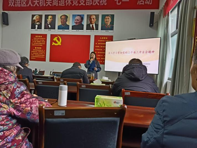 新年伊始的2025年元月8日,成都市雙流區(qū)人大離退休支部組織全體老黨員在區(qū)二辦會議室參加了由區(qū)委黨校講師趙紅琴主講的深入學習黨的二十屆三中全會精神輔導報告。