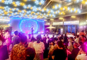 2023年7月16日晚,四川省廣安市市民在城南片區(qū)吾悅廣場(chǎng)新印巷新開業(yè)的“廣安首個(gè)示范性街區(qū)”觀看開街儀式。