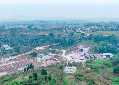 2024年12月31日,鳥瞰由中鐵十局承建的已貫通的位于四川省廣安華鎣市明月鎮(zhèn)境內(nèi)的西渝高鐵康渝段站前十一標(biāo)的草靶場(chǎng)隧道。(邱海鷹 劉 忠/ 文圖)