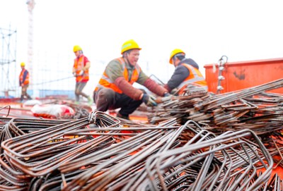 2025年2月2日(大年初五),在四川省廣安市廣安區(qū)官盛新區(qū)廣安理工學院建設工地,中建三局的建設者正冒著雨霧天氣轉運鋼筋。