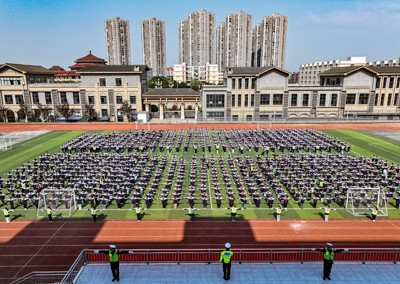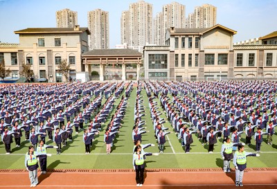 2025年3月27日,四川省華鎣市紅巖小學(xué)的學(xué)生利用大課間練習(xí)交通警察手勢信號廣播體操(簡稱“交通手勢操”),迎接第30個(gè)“全國中小學(xué)生安全教育日”。