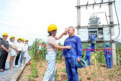 2025年6月24日,國家電網(wǎng)四川省華鎣市供電公司紅巖供電所的員工家屬,為在一線工作的親人拭去臉上的汗水。