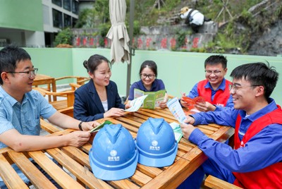 2025年8月21日,國家電網(wǎng)四川省華鎣市供電公司的黨、團(tuán)員志愿服務(wù)隊(duì),在紅巖鄉(xiāng)高頂村“原舍·嘿礦熊貓”民宿向工作人員宣講電力安全知識。