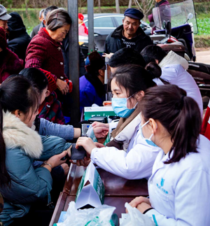 聯(lián)系幫扶樺樹村的營山縣人民醫(yī)院派出醫(yī)生在現(xiàn)場免費為村民檢查身體、發(fā)放衛(wèi)生保健知識宣傳資料。在節(jié)目表演結(jié)束后為全村的村民們準備了豐盛的午餐,在龍年即將到來之際向村民們表達了新年最美好的祝福。