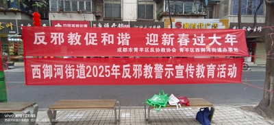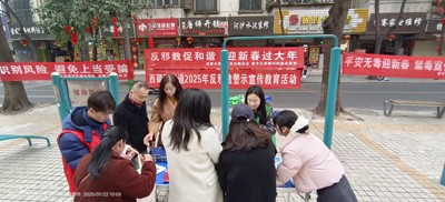 為認(rèn)真貫徹落實(shí)中央和省委、市委、區(qū)委反邪教工作部署要求,深入推進(jìn)反邪教警示宣傳教育,筑牢全社會(huì)反邪教思想防線和行動(dòng)自覺,維護(hù)春節(jié)期間轄區(qū)政治安全和社會(huì)穩(wěn)定,2025年1月22日上午,成都市青羊區(qū)反邪教協(xié)會(huì)聯(lián)合青羊區(qū)西御河街道辦事處在光明巷開展“反邪教促和諧,迎新春過大年”為主題的2025年春節(jié)期間反邪教警示宣傳教育活動(dòng),同時(shí)還開展了禁毒和防詐騙宣傳活動(dòng)。