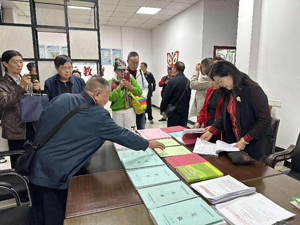劉建蓉一行觀看興文反邪教協(xié)會(huì)制度建設(shè)