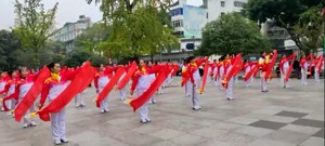 我們將象青松永遠屹立在高高的山峰上。此時此刻,隊員們高高拋起紅綢,跳躍著!歡呼著!快樂著!為了把熱烈的氣氛推向高潮,大家又舉著小紅旗高歌《沒有共產(chǎn)黨就沒有新中國》巜革命人永遠是年青》《團結就是力量》。宏亮的歌聲響徹公園,給重陽節(jié)帶來了最熱烈而歡樂的氣氛。給棠湖公園廣埸增添了獨特的亮麗風景。