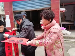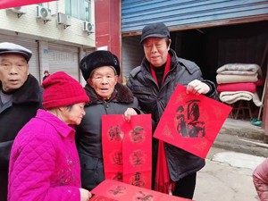 送春聯(lián)送祝福,墨寶飄香暖人心。趙大爺手拿春聯(lián)和福字,笑容滿面地對(duì)楊建國(guó)老師說:“感謝老專家不辭辛苦為我們送春聯(lián)送祝福,也祝愿老專家們新年快樂,身體健康!希望明年又能看見你們下鄉(xiāng)來喲。”(徐永萍)