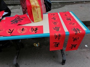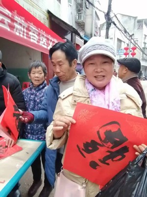 “來,來,來,大爺大媽們,快到金同小吃電商門店前去領(lǐng)春聯(lián)喲,區(qū)老科協(xié)的書法老師正在寫春聯(lián)、送福字。”新復(fù)鄉(xiāng)同仁社區(qū)黨支部副書記李燕一聲聲清脆的吆喝聲,把趕集的鄉(xiāng)親們引到了現(xiàn)場(chǎng),排隊(duì)領(lǐng)取春聯(lián)和“福”字。