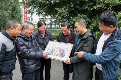 2025年2月28日,四川省廣安華鎣市的志愿者專程把“全家福”送到古橋街道古橋社區(qū)因幾十年照顧癱瘓在床的妻子獲得“中國好人”殊榮的趙玉春家中。