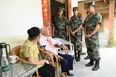 范志華曾是中國軍史上第一支傘兵部隊(duì)的傘兵,曾在緬甸和廣東等地參加過抗日作戰(zhàn),經(jīng)歷過大大小小多次戰(zhàn)役。如今,6名子女輪流照料他和93歲的老伴。隊(duì)員們圍在他身邊,聆聽他講述曾經(jīng)的烽火硝煙。