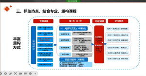 戴志敏老師結(jié)合近年全國職業(yè)院校技能大賽教學(xué)能力比賽的情況,指導(dǎo)參會(huì)教師認(rèn)真閱讀比賽文件,精心備賽。她指出,參賽教師要研究大賽方案,精準(zhǔn)對標(biāo)備賽;立足課程標(biāo)準(zhǔn),開展專題教學(xué);抓住熱點(diǎn),結(jié)合專業(yè),重構(gòu)課程;注重創(chuàng)新特色。她還建議大家要潛心備戰(zhàn)省賽決賽,專心專注做好比賽。