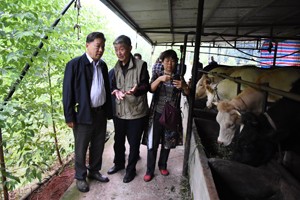 10月8日,連日秋雨纏綿后的榮州大地濕漉漉的,鄉(xiāng)村小路滑溜溜的。伴隨零星小雨,迎著徐徐秋風(fēng),感受著再生稻送來的豐景,自貢市老科協(xié)會長常玉華、榮縣老科協(xié)會長鄒崇霞等帶領(lǐng)老專家一行,帶著對養(yǎng)殖戶栽構(gòu)樹做飼料降成本是否見效的無限期許,踏著泥濘小路走進(jìn)新橋鎮(zhèn)唐咀村養(yǎng)殖戶祝常康的養(yǎng)殖場、構(gòu)樹種植現(xiàn)場,一 一問了個(gè)明白,感受了養(yǎng)殖戶獲益后真誠的點(diǎn)贊,隨行的老專家還現(xiàn)場傳授了管護(hù)及扦插技術(shù)。