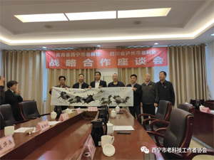 座談會(huì)后由西寧市老科協(xié)代表向?yàn)o州市老科協(xié)贈(zèng)送由協(xié)會(huì)專(zhuān)委會(huì)專(zhuān)家趙明老師親手繪制的書(shū)畫(huà)作品,寓意兩市老科協(xié)和衷共濟(jì)共創(chuàng)美好未來(lái)。(瀘州市老科協(xié))