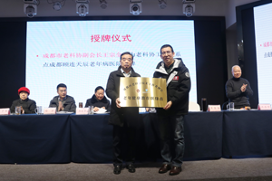大會(huì)上由成都市老科協(xié)常務(wù)副會(huì)長(zhǎng)兼秘書(shū)長(zhǎng)王宗全、老協(xié)綜合黨委書(shū)記王生琪為新發(fā)展的老科協(xié)工作聯(lián)系點(diǎn)——成都顧連天辰老年病醫(yī)院授牌。