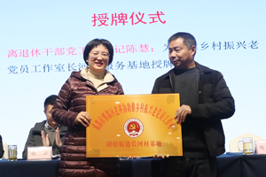 由區(qū)委組織部副部長(zhǎng)、老齡委副主任、老干局局長(zhǎng)陳慧為新發(fā)展的老科協(xié)助推鄉(xiāng)村振興老黨員工作室長(zhǎng)河村服務(wù)基地授牌。