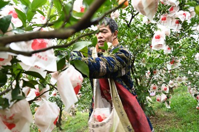 55歲的21組果農(nóng)張漢成,夫妻倆勤勞而且肯學(xué)技術(shù),以畝產(chǎn)量高、品質(zhì)好成為當(dāng)?shù)氐男б婷凹鈶簦彩鞘∈忻襟w多年來(lái)采訪的“專業(yè)戶”,夫妻倆早就成為媒體人的老朋友了。