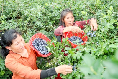 芒種來臨,四川省華鎣市陽和鎮(zhèn)三岔河村一眼藍莓園的特色水果藍莓陸續(xù)成熟,引來不少水果商販和市民采購。